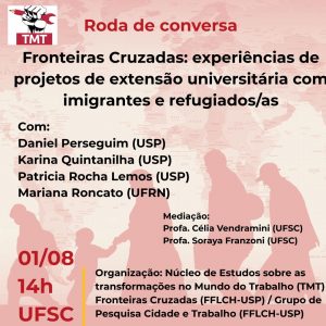 Convite: Roda de Conversa organizada pelo TMT em conjunto com o Grupo de Pesquisa Cidade e Trabalho (FFLCH-USP).