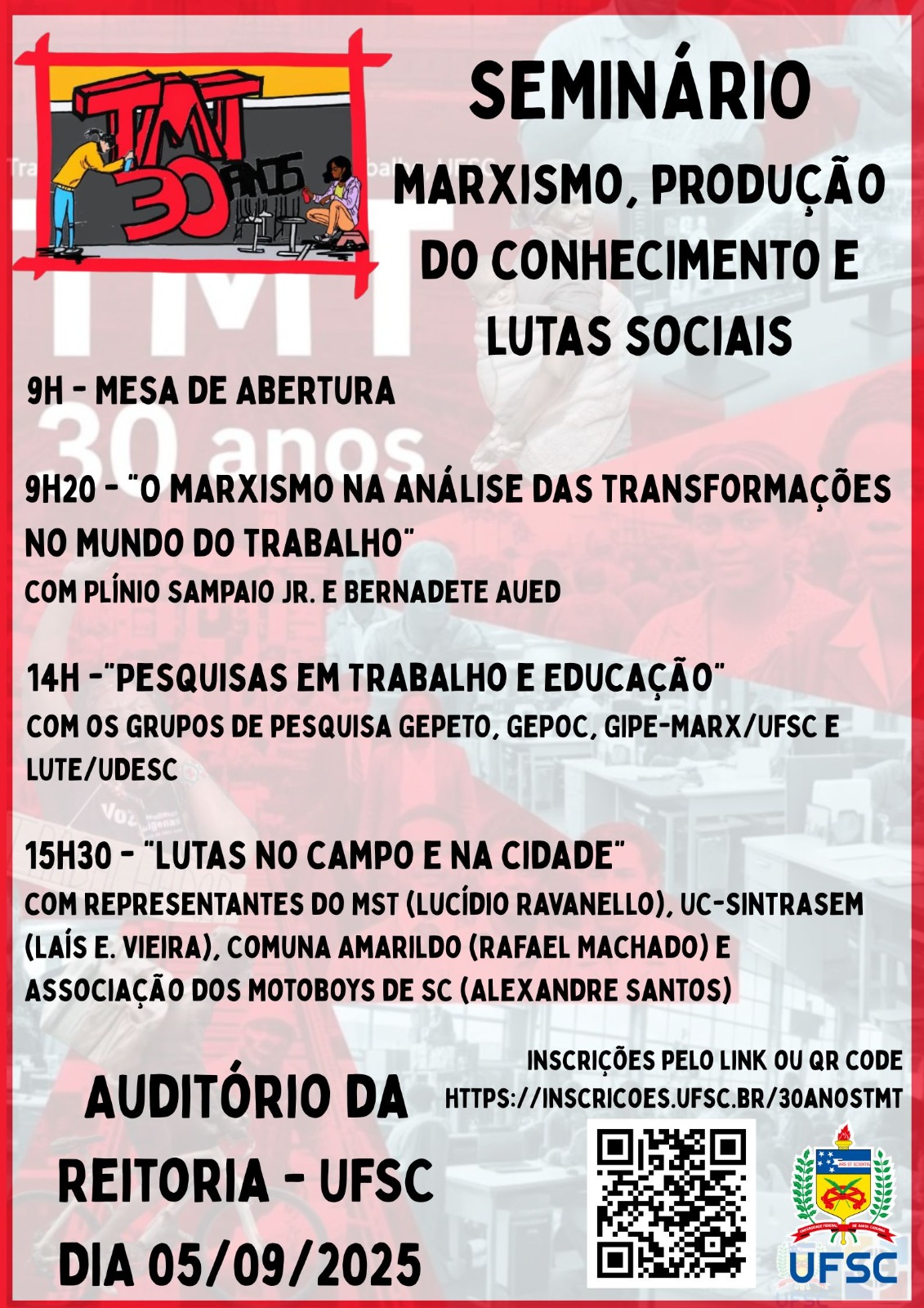 Link para inscrição no Minicurso Trabalho, Educação e Estética em Lukács (fundamentos iniciais): inscricoes.ufsc.br/minicursogepoc25anos -